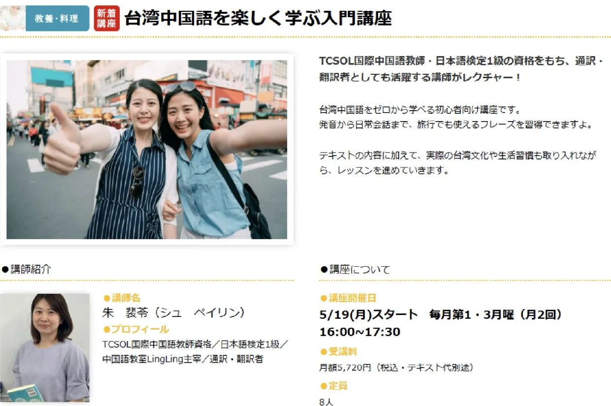 合志市生涯学習主催講座「基礎から学ぶ はじめての台湾華語教室」